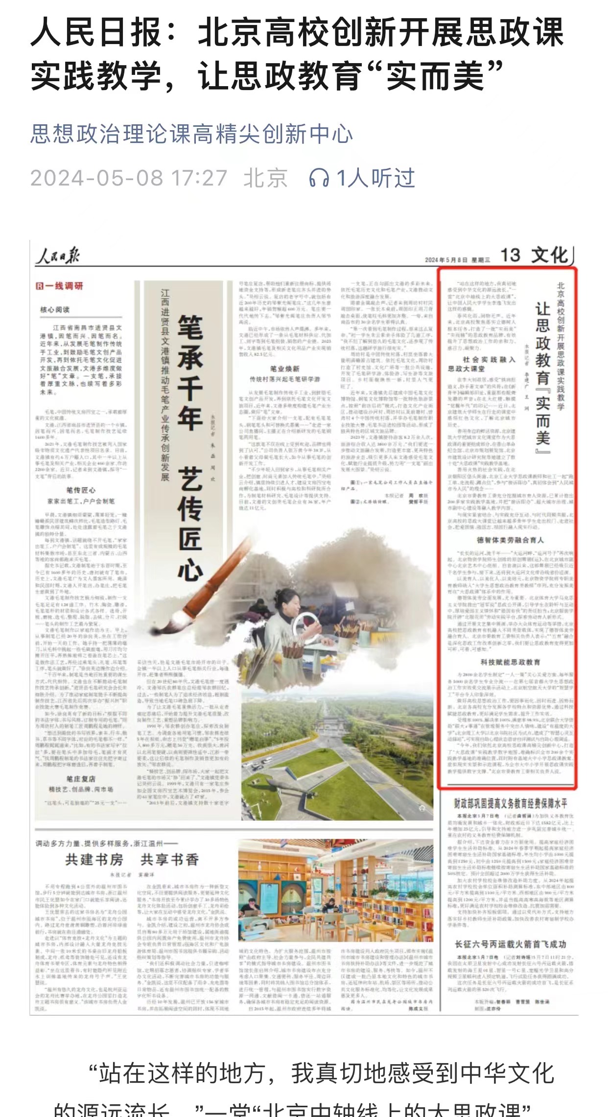 春风化雨,润物无声。近年来,北京高校聚焦落实立德树人根本任务,打造了一批“实而美”“实而精”的思政教育品牌,有效提升了思想政治工作的亲和力、感召力、凝聚力。